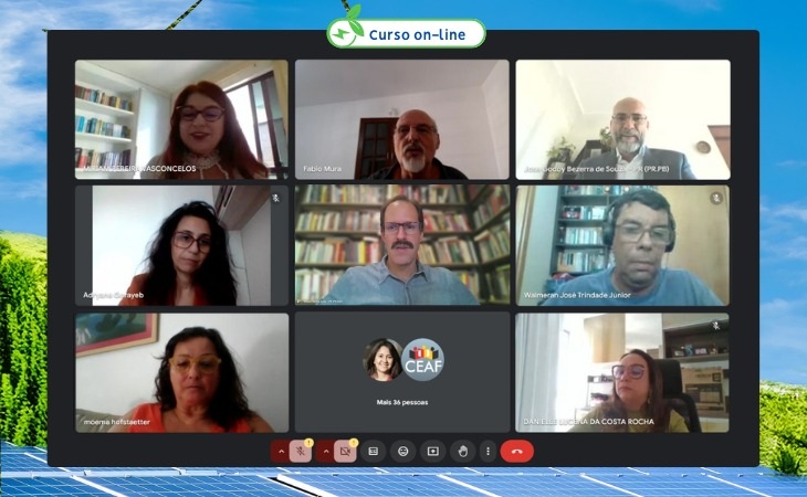 Nesta sexta, foi realizado o Módulo III do curso, que abordou a justiça energética para comunidades e ações sociais e ambientais. A promotora de Justiça Miriam Pereira Vasconcelos foi a mediadora das três mesas do módulo. A primeira discutiu a cartografia social e usinas de energia eólica e solar e teve a participação da professora da Universidade Federal do Ceará (UFC), Adryane Gorayeb; da professora Moema Hofstaetter, Integrante do Movimento dos Atingidos pelas Renováveis (MAR); do procurador da República em Goiás, Wilson Rocha Fernandes Assis; e do coordenador estadual das Comunidades Negras Quilombolas da Paraíba (Cecneq), Josiel Ventura.