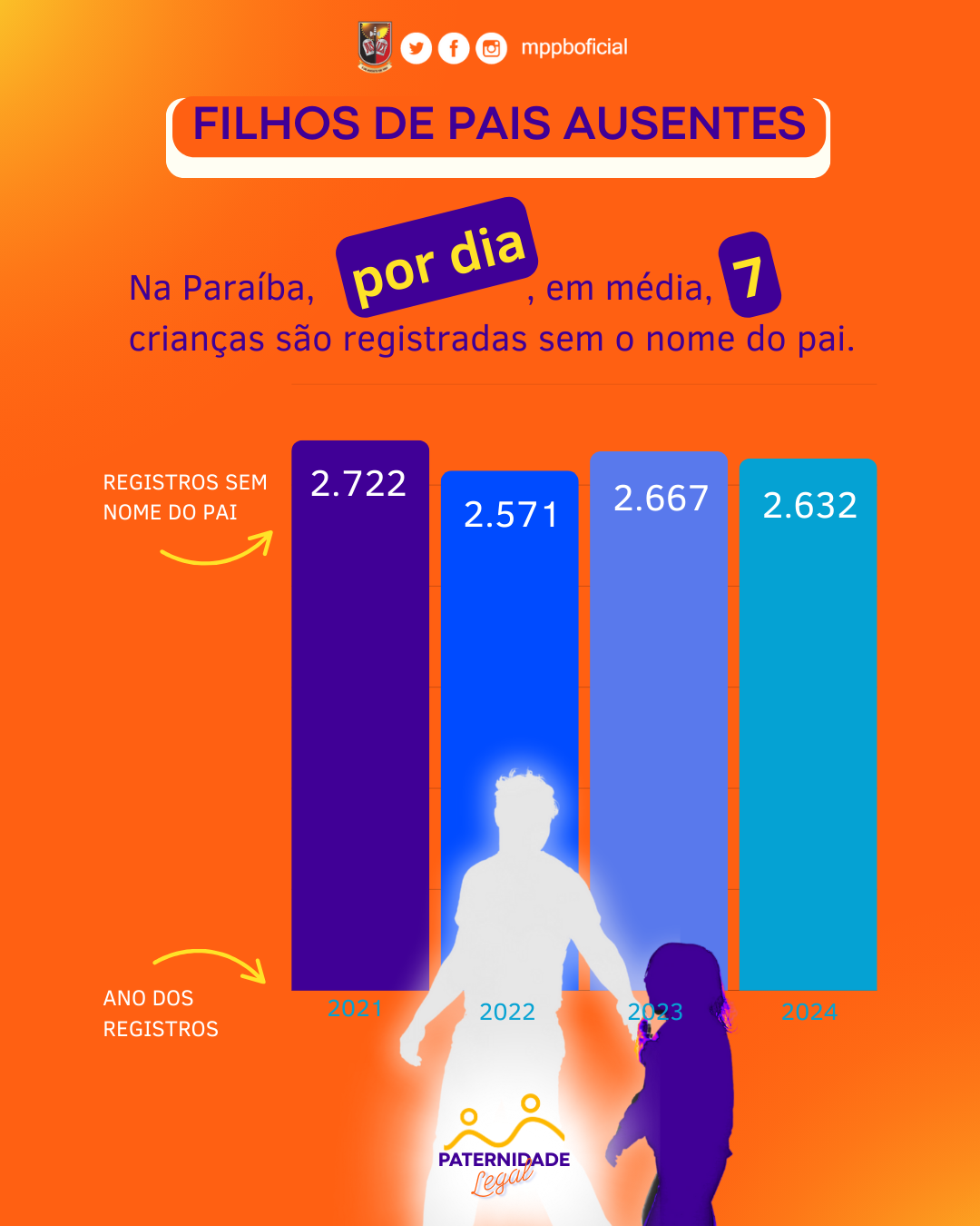 A cada dia, sete bebês são registrados sem o nome do pai, na Paraíba. A média é baseada nos dados da Associação Nacional dos Registradores de Pessoas Naturais (Arpen-Brasil), segundo os quais, o sub-registro de paternidade atingiu 10.592 crianças, nos últimos quatro anos (2021-2024). A identificação do problema levou o Ministério Público da Paraíba a reforçar sua atuação a partir de uma campanha de conscientização junto a seus integrantes e à sociedade paraibana. “Não é apenas um sobrenome” é o chamado da ação que destaca a ausência do nome do pai como uma violação de direitos e como um gerador de efeitos emocionais, morais e patrimoniais aos filhos de pais ausentes.