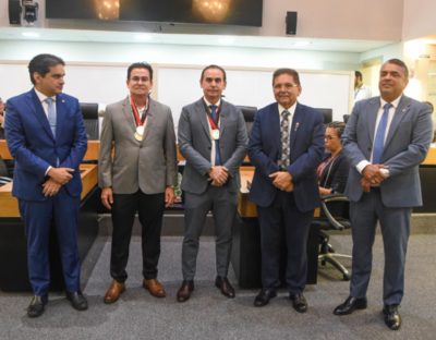 A Assembleia Legislativa da Paraíba (ALPB) realizou sessão solene, na tarde desta quarta-feira (04), proposta pelo presidente da Casa, deputado Adriano Galdino, para outorga da Medalha Epitácio Pessoa e do Mérito Empresarial José de Paiva Gadelha a Edvaldo Neves dos Santos e Neilton Neves dos Santos, bem como, a Medalha de Honra ao Mérito Legislativo Senador Humberto Lucena à empresa Medow Entretenimento e Cultura e ao empresário Jomário Gomes de Souto.