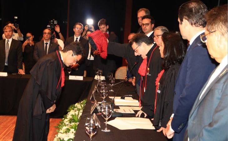 Logo após, a secretária do CPJ, a procuradora de Justiça Kátia Rejane, procedeu a leitura do Termo de Investidura e Compromisso de Leonardo Quintans no cargo de procurador-geral de Justiça. Após a aposição do capelo, Quintans passou a presidir a solenidade.